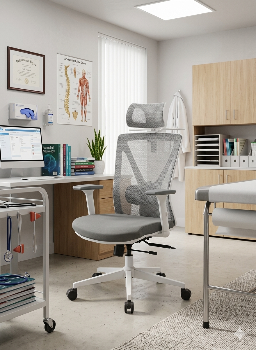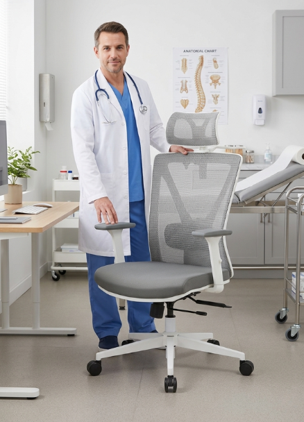 KOLINN Medic je kancelárska stolička našej vlastnej značky DELSO, navrhnutá špeciálne do zdravotníckych zariadení. Vďaka bielej konštrukcii, umývateľnému sedáku zo svetlo šedej koženky a umývateľným podrúčkam vo svetlo šedej farbe spĺňa požiadavky na jednoduchú údržbu aj čistý, profesionálny vzhľad. Zároveň poskytuje vysoký ergonomický komfort za dostupnú cenu. Táto kancelárska stolička patrí medzi niekoľko málo modelov vhodných aj pre vyššie typy postáv, a to vďaka možnosti nastavenia výšky operadla vo veľkom rozsahu.