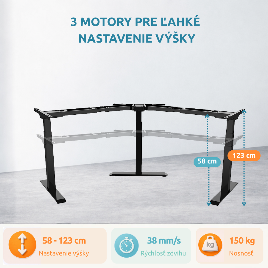 Rohová elektrická výškovo nastaviteľná podnož DEF 223 MTS